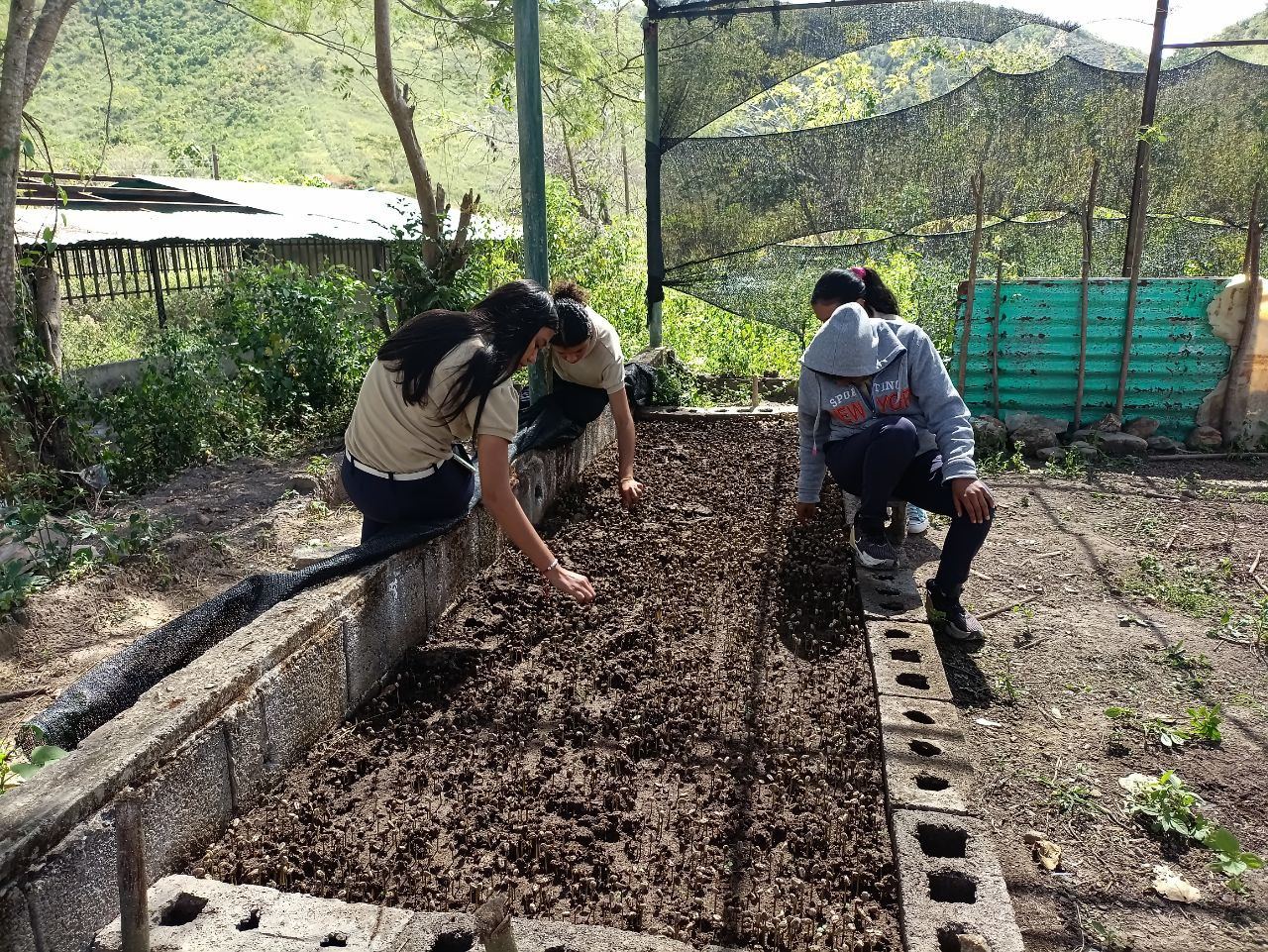 Gracias a la tutoría de sus docentes, los estudiantes lideran el área de café-vivero, donde experimentan con diversas mezclas de lombrinaza, compost y bocashi.