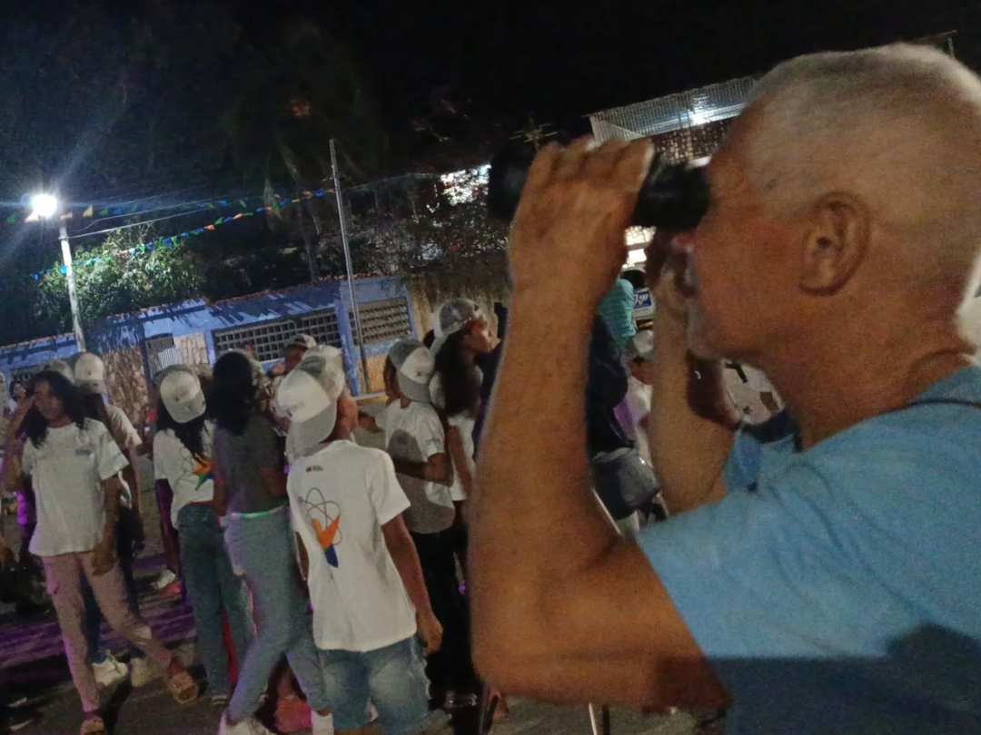 Con telescopios apuntando al cielo, los niños observaron la conjunción planetaria, admirando a Júpiter, Marte y una brillante Venus. Aprendieron sobre constelaciones, planetas y cómo el cielo ha servido como mapa para pescadores y navegantes a lo largo de la historia.