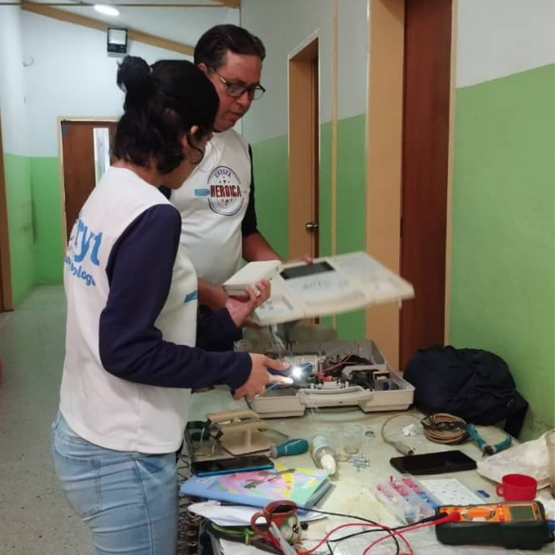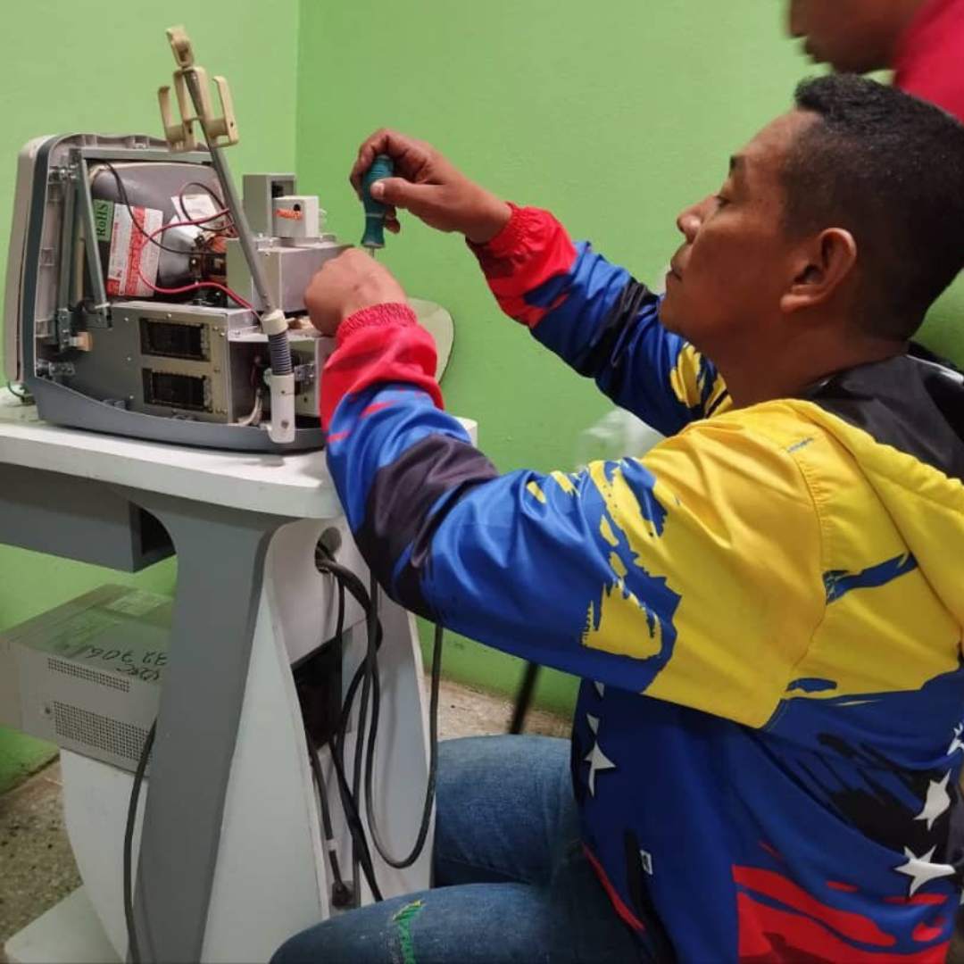 Durante la jornada, los especialistas atendieron cuatro equipos médicos fundamentales para la atención primaria: un nebulizador, un aspirador quirúrgico, un desfibrilador y un ecógrafo.