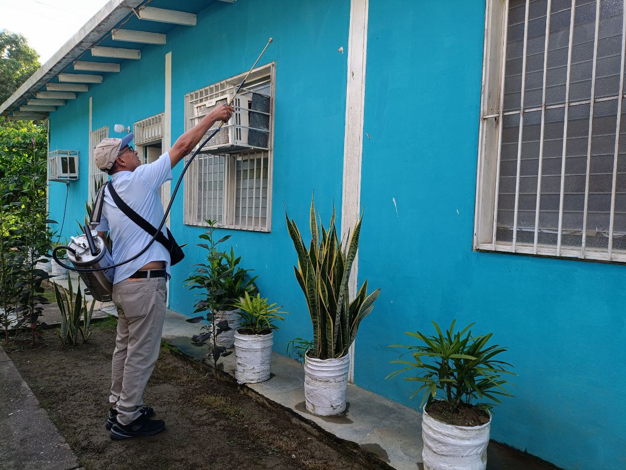 Las brigadas de Salud Ambiental se encargaron de aplicar biocontroladores con pulverizadores en 202 viviendas de la comunidad de Domingo de Ramos.