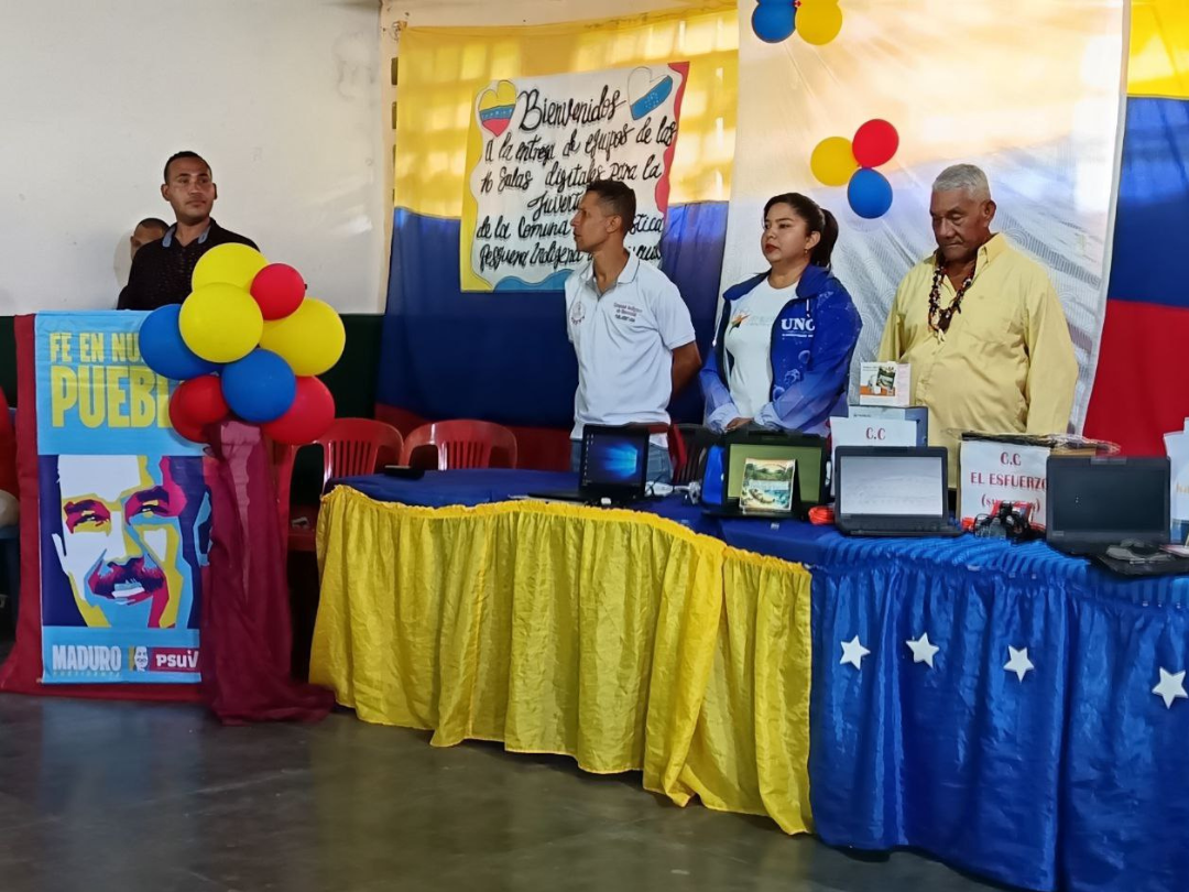 En esta oportunidad, la representación juvenil de la Comuna Agroturística Pesquera Indígena de Nurucual en la parroquia Raúl Leoni, recibió la dotación de las Salas Digitales para el Empoderamiento Tecnológico de la Juventud Comunera.